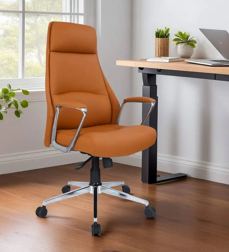 Jayme Leatherette Executive Chair With Knee Tilt Mechanism In Tan Color